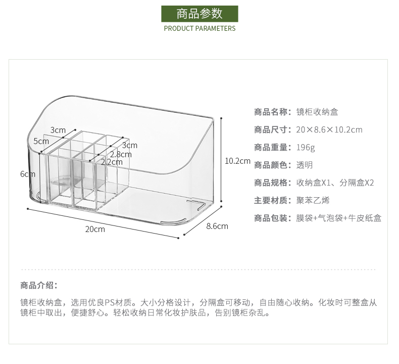 5、嚴(yán)選材質(zhì):PS透明材質(zhì),一目了然,拿取方便