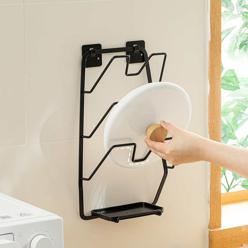 2、一層一蓋:三層階梯托架,大小鍋蓋都能放