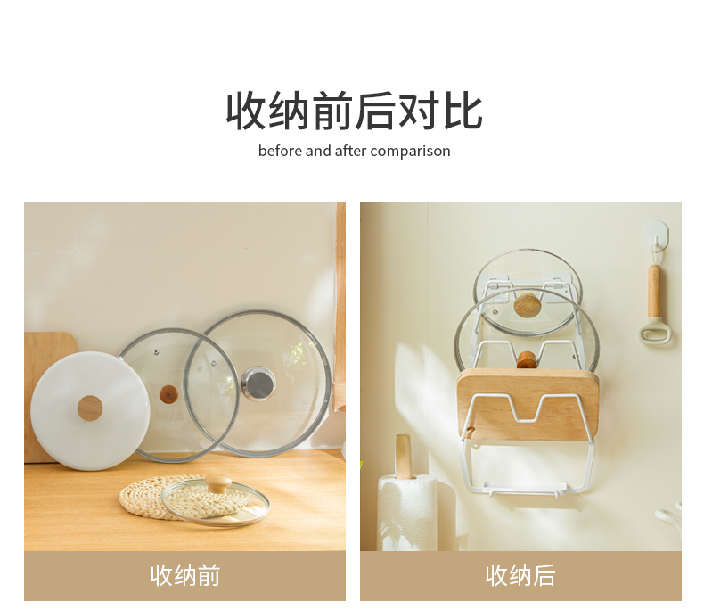 1、壁掛收納:免釘壁掛,拓展廚房收納空間